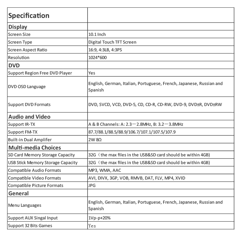 The maximum capacity is 32GB, but the files in the USB & SD card should be within 4GB.