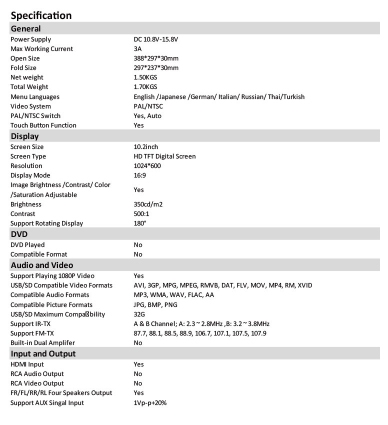 10.2" HD Screen (16:9,1024*600)