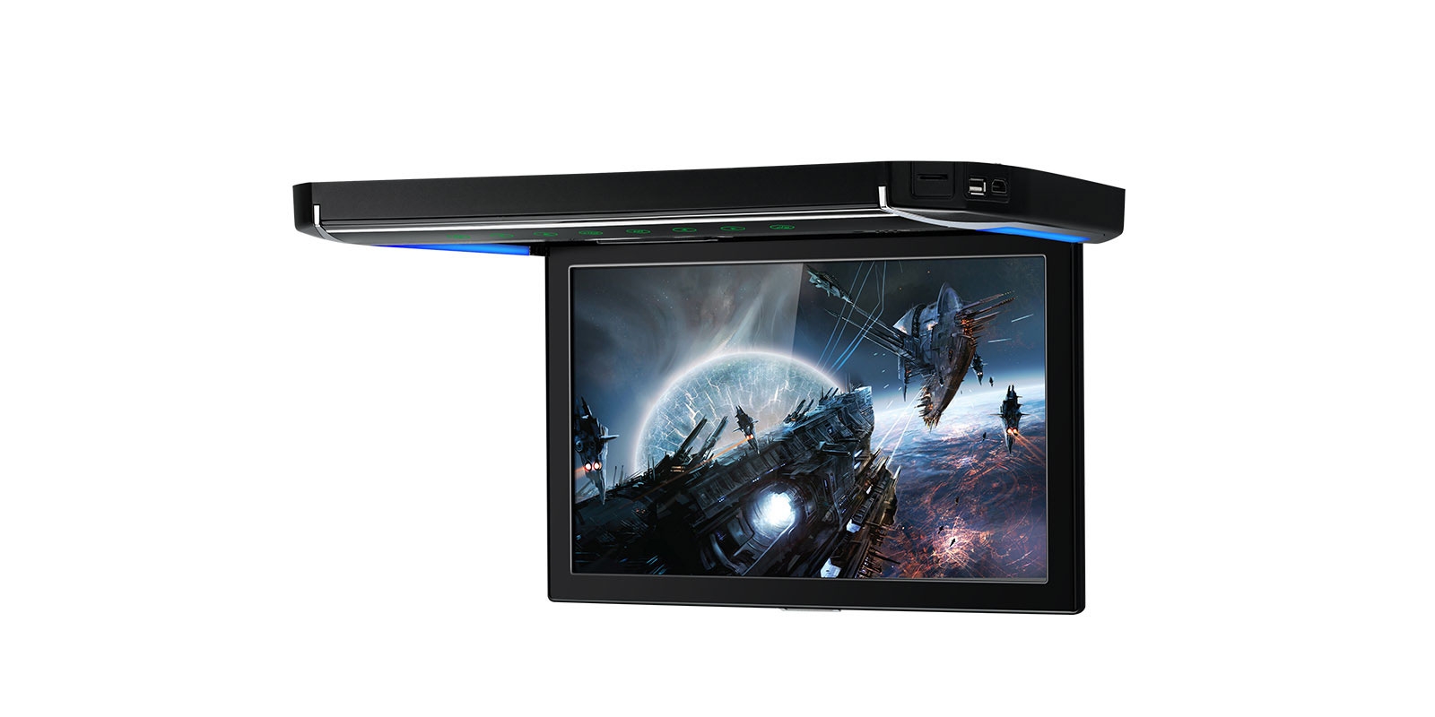 The monitor can be opened up to an angle of 120°, ensuring maximum viewing position for passengers and usability in the vehicle.