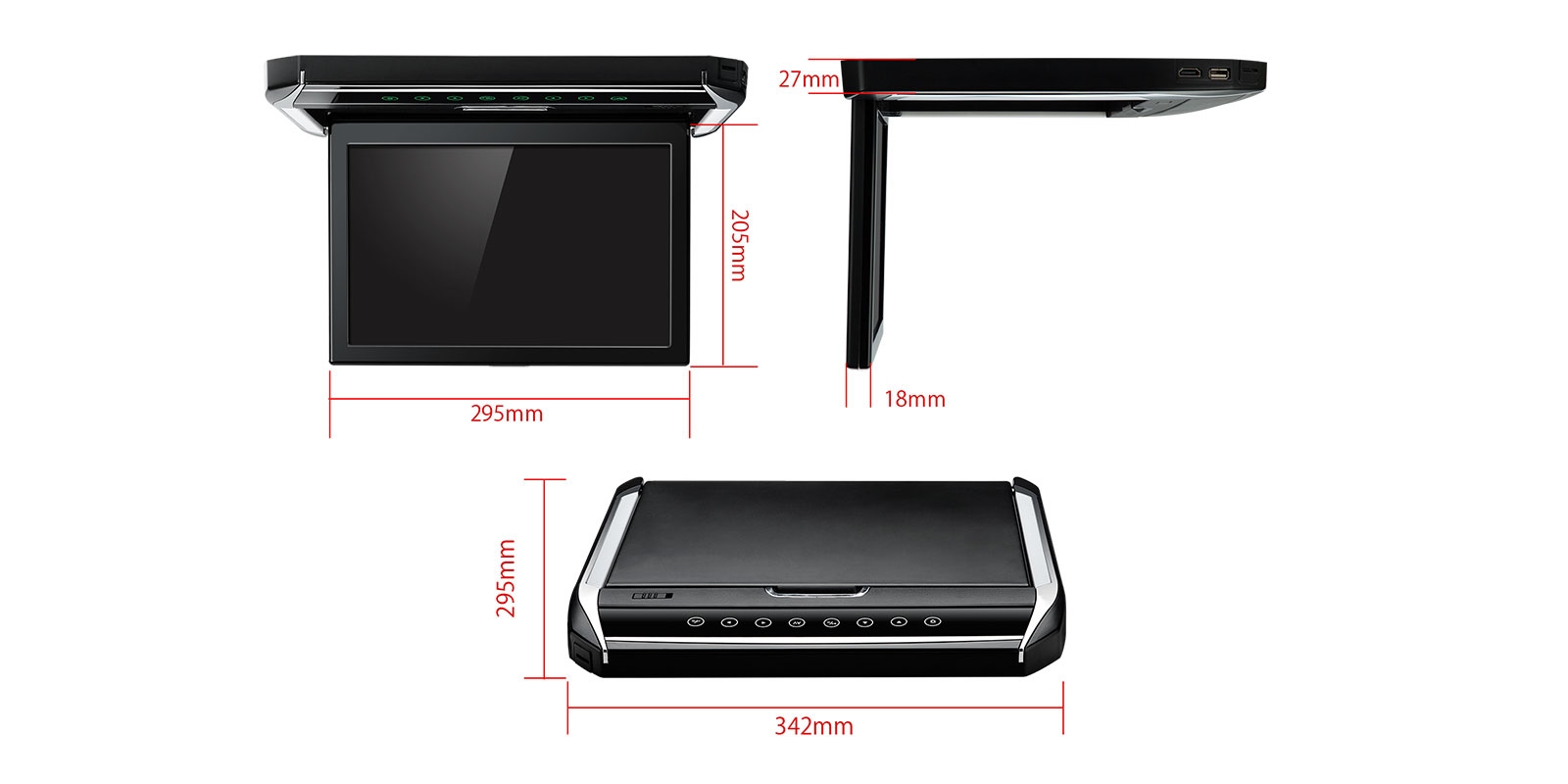 12.1″ HD Digital TFT Screen Ultra-thin Roof Mounted Monitor 16:9 Wide Screen with HDMI Port