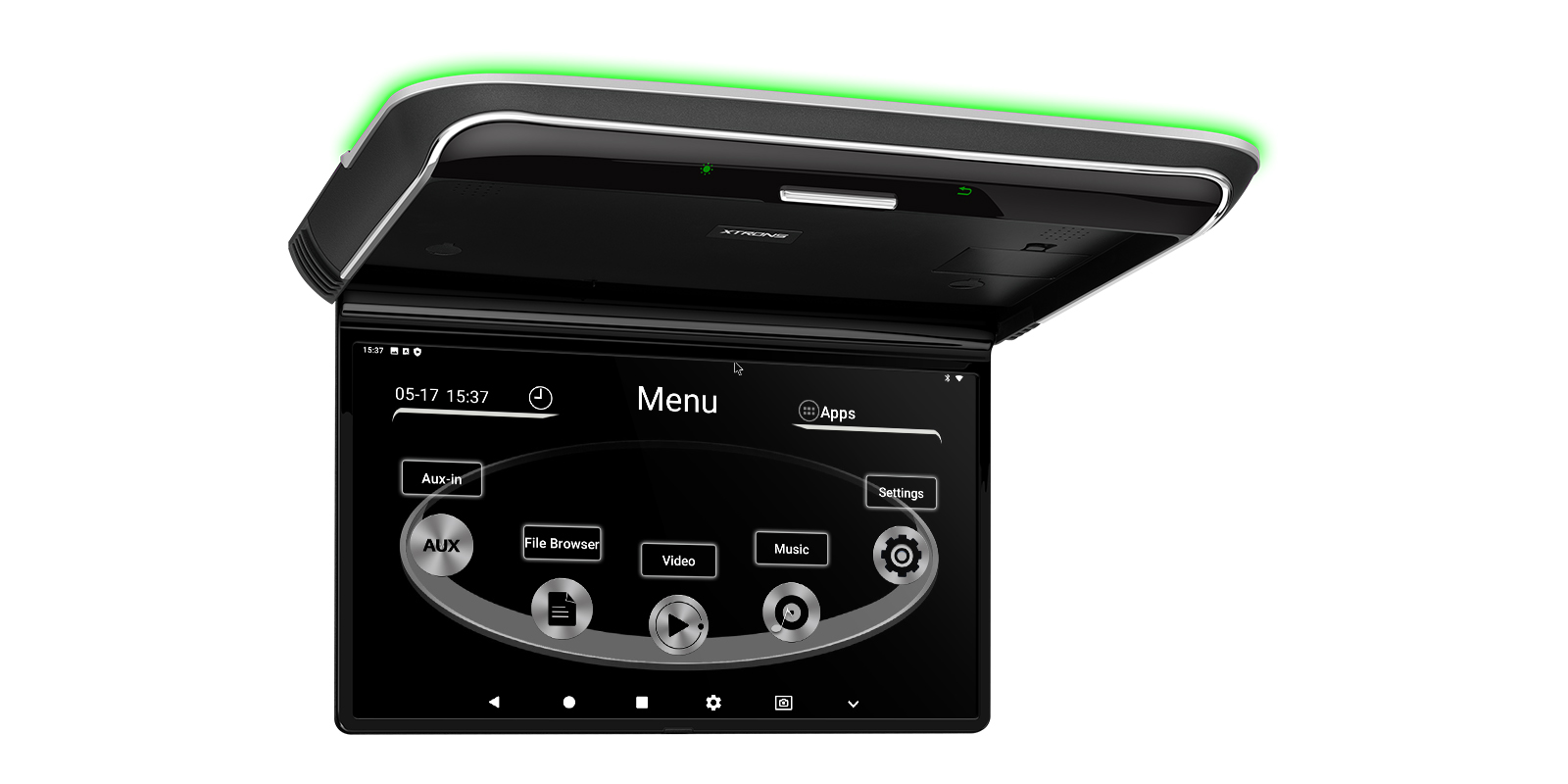 14″ Ultra Narrow Bezel Android Car Roof Multimedia Player with FHD 1920×1080 IPS Screen Optimal Viewing Superior Sound, Screen Mirroring, HD Input Two Channels CVBS Input Automatic Lighting Control Multi-color Ambient Light
