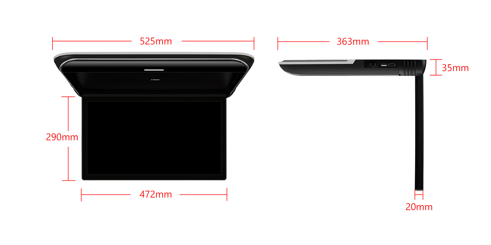 19.5″ HD Digital TFT Screen Ultra-thin Roof Mounted Player 16:9 Wide Screen with Built-in Speakers