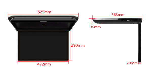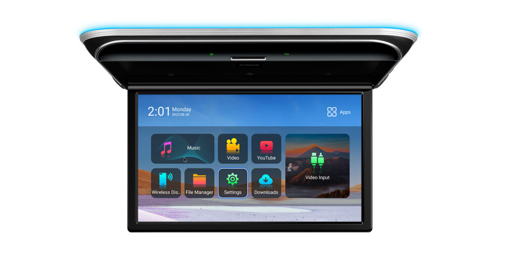 19.5“ 1600×900 IPS Screen Octa-core Android Car Roof Multimedia Player with HDR10+ 8K UHD Video Superior Sound and Screen Mirroring Built-in HD Input