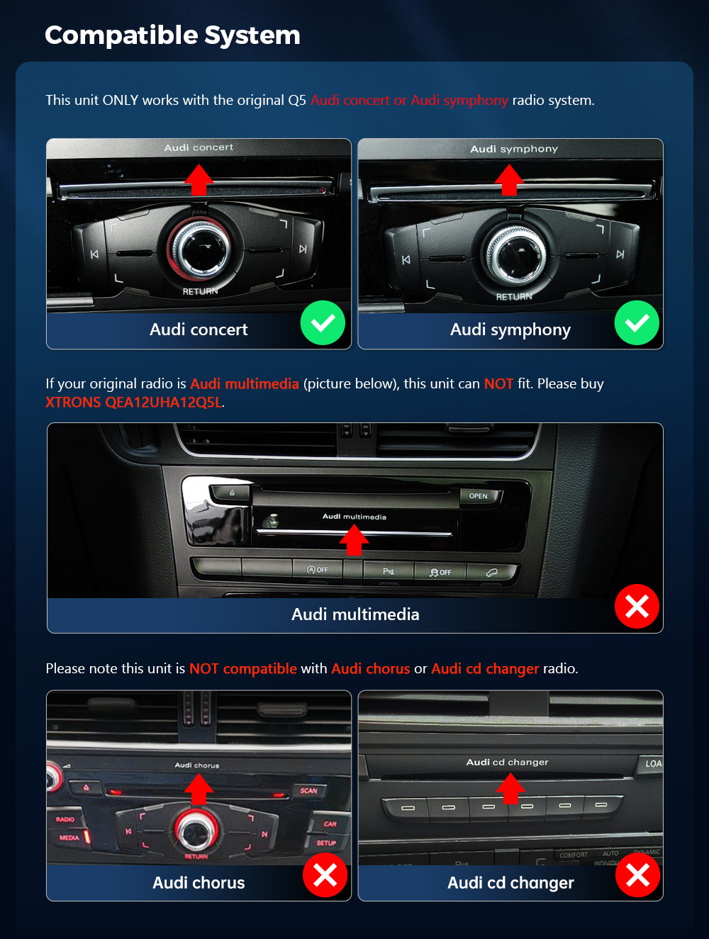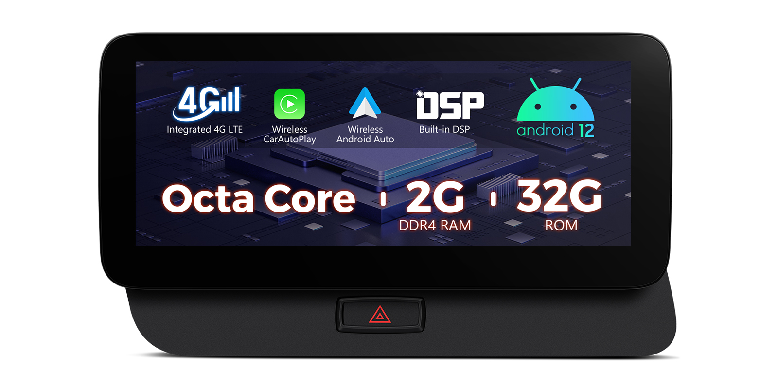 10.25″ Android 12 Octa-Core 64Bit Processor 2GB RAM + 32GB ROM Car Multimedia Navigation System with Integrated 4G Solution Built-in CarAutoPlay Android Auto & DSP Original Style Theme For Audi Q5 with Audi Concert or Audi Symphony Radio System Left Hand Driving Vehicles