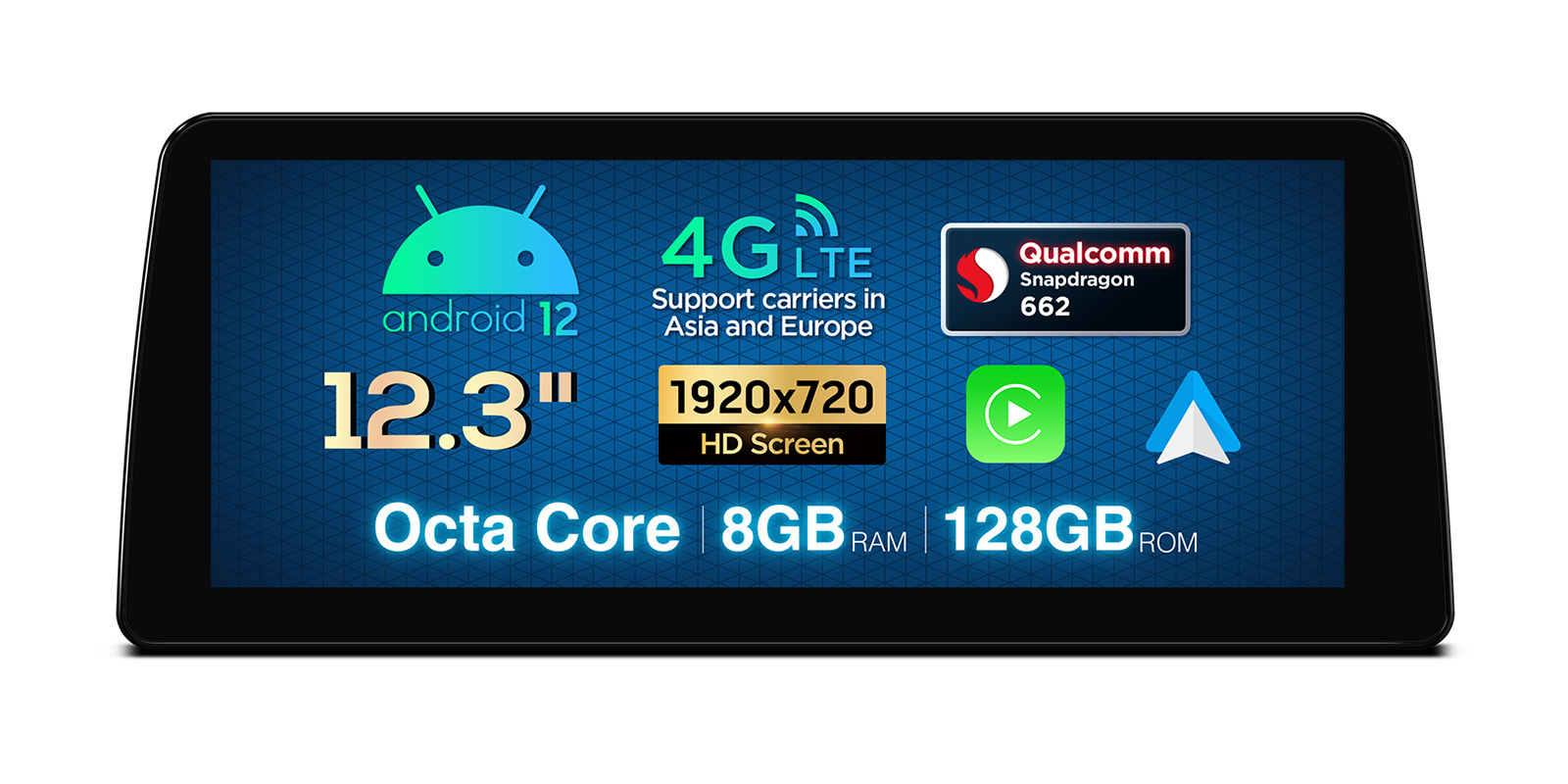 12.3″ Super Large Grade-A HD IPS Screen Android 12 Octa-Core 64Bit Qualcomm 662 Processor 8GB + 128GB ROM Car Multimedia Navigation System with Built-in 4G Built-in Wireless CarPlay/Full-featured Android Auto Custom Fit For BMW 3 Series with CIC System