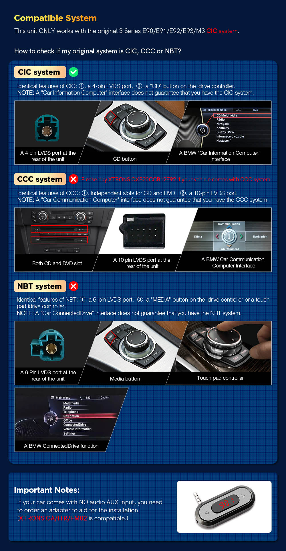 Introducing XTRONS’ latest dual system car stereos, tailor made for BMW vehicles. Not only matching the original dashboard for a perfectly integrated appearance, these units bring the most powerful Android solution and touchscreen experience to your BMW, making the dash smarter than ever. Now without uninstalling your CD player, radio or iDrive, you can swipe the screen and enter a new world of 4G communication and entertainment.