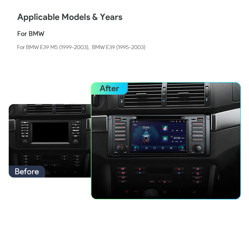 Android 12 Octa Core 4GB DDR4 RAM + 64GB Solid State ROM 7” 1024×600 HD IPS Screen Car DVD Multimedia Player GPS Navigation System Built-in CarPlay & Android Auto & DSP High Power TDA7851 Amplifier USB Tethering Dual UI TDA7708 RDS Radio Support AHD Camera Custom Fit for BMW E39