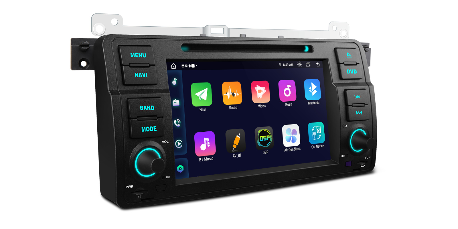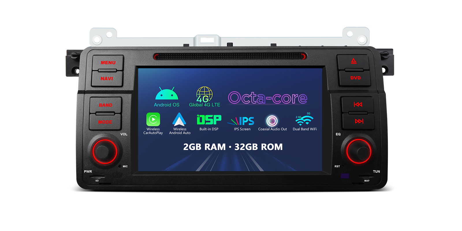Android Octa Core 2GB DDR4 RAM + 32GB ROM 7” 1024×600 IPS Screen Car DVD Multimedia Player GPS Navigation System with Dual UI Automotive-grade Hardware Global 4G LTE Network Screen Mirroring Built-in CarAutoPlay & Android Auto & DSP Radio with RDS Coaxial Audio Output for BMW/Rover/MG