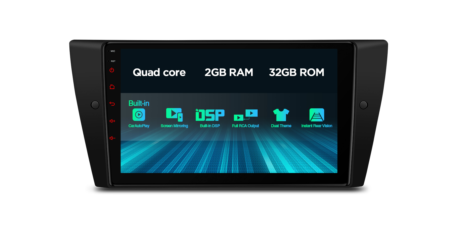 Android 10 Quad Core 2GB RAM + 32GB ROM 9” Large IPS Screen Car Stereo Multimedia Player with Built-in CarPlay, DSP, PIP, Screen Mirroring Full RCA Output Custom Fit for BMW E90/E91/E92/E93
