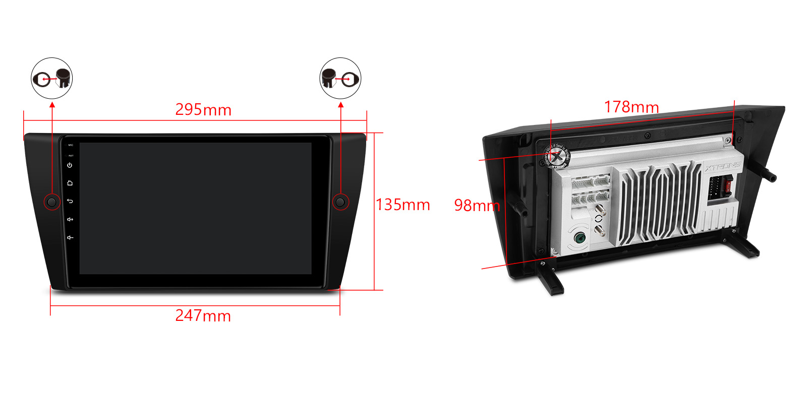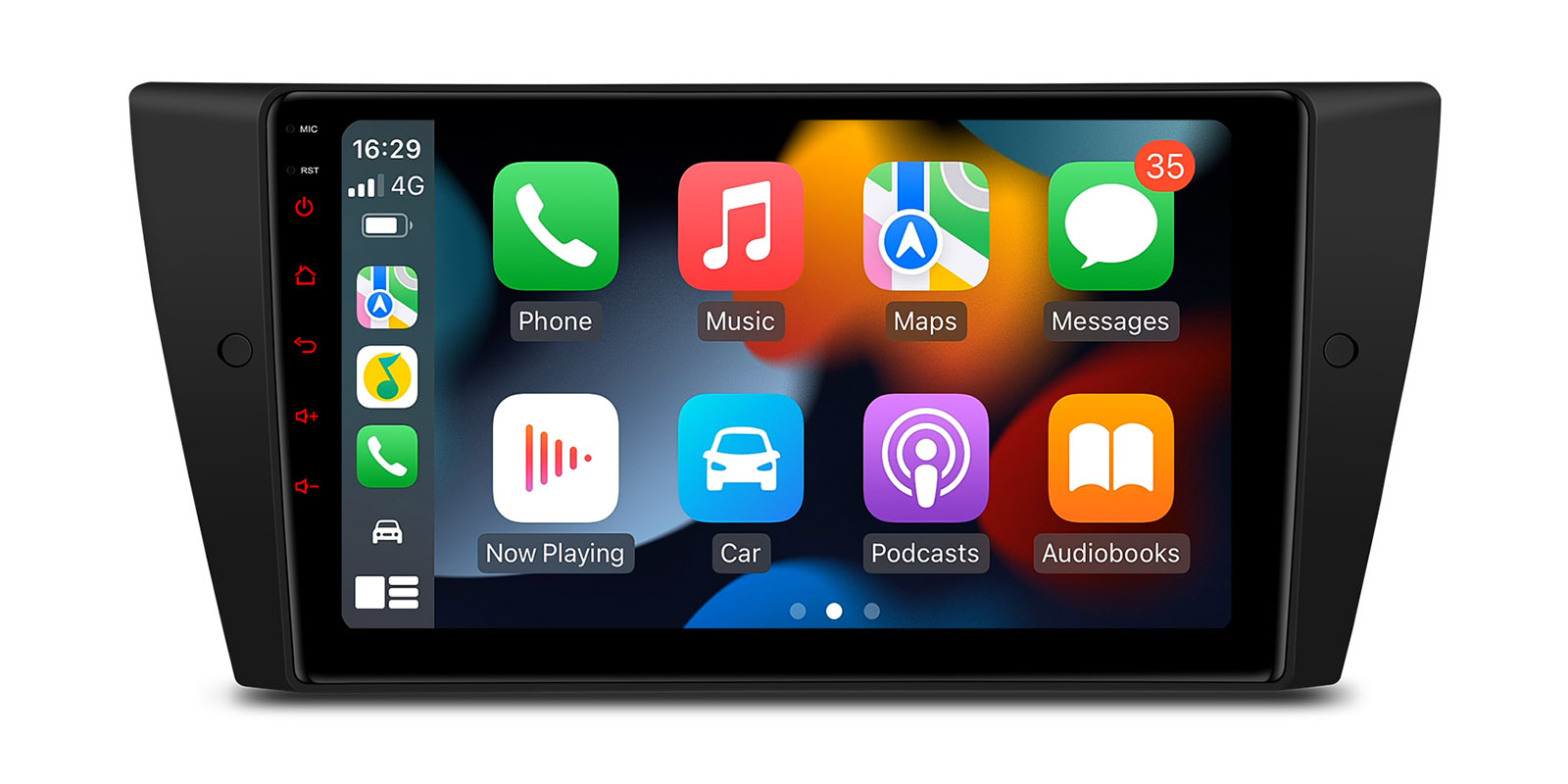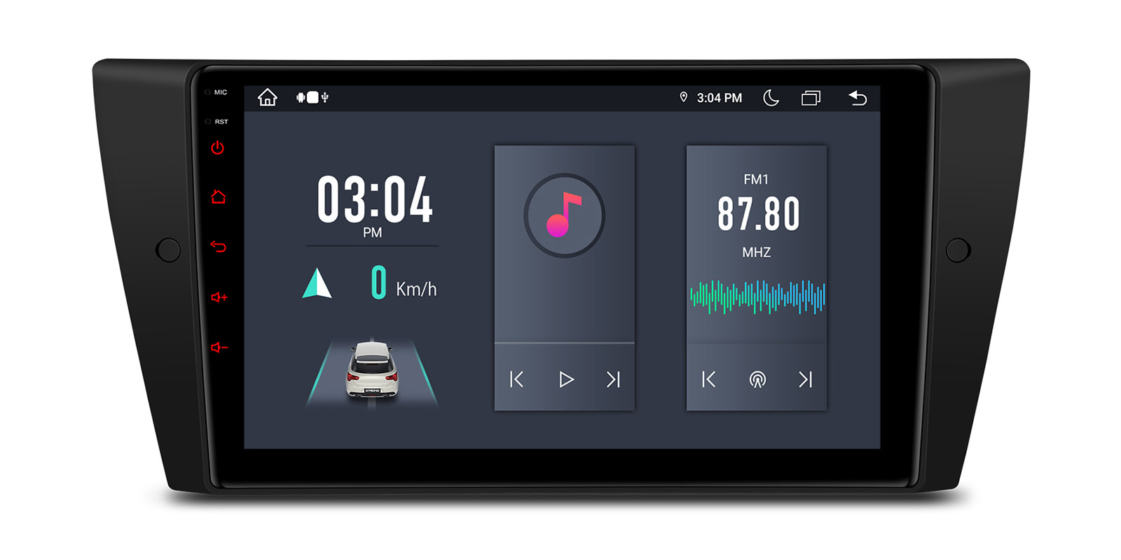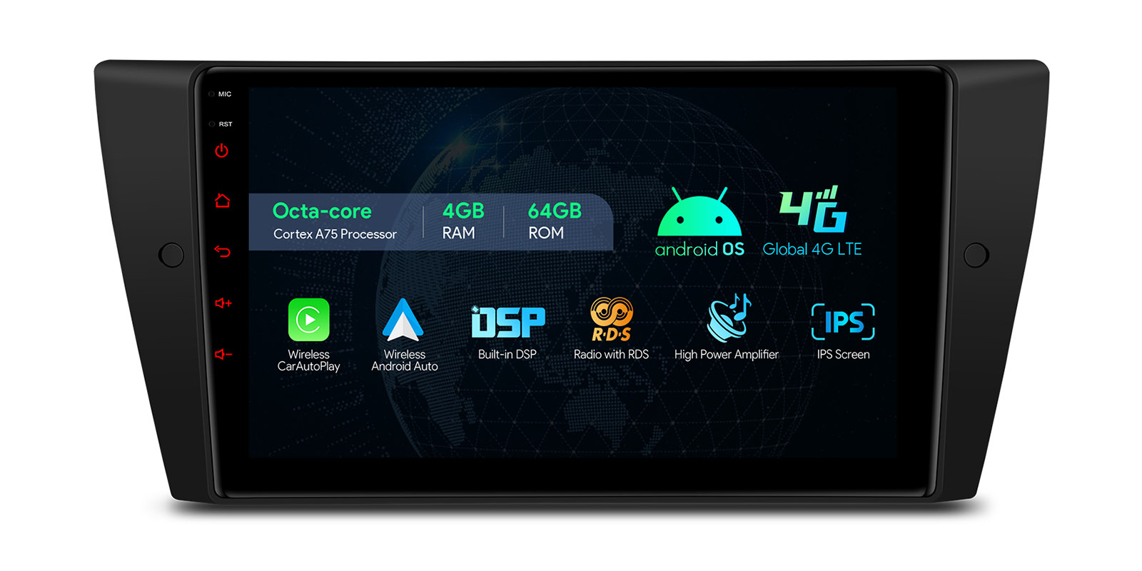 Android 13 Octa Core 4GB DDR4 RAM + 64GB Solid State ROM 9” 1280×720 HD IPS Screen Car Stereo Multimedia Player GPS Navigation System with Integrated global 4G Solution Built-in CarPlay & Android Auto & Built-in DSP Screen Mirroring High Power TDA7851 Amplifier USB Tethering TDA7708 RDS Radio Support AHD Camera Custom Fit for BMW E90/E91/E92/E93/M3