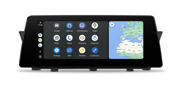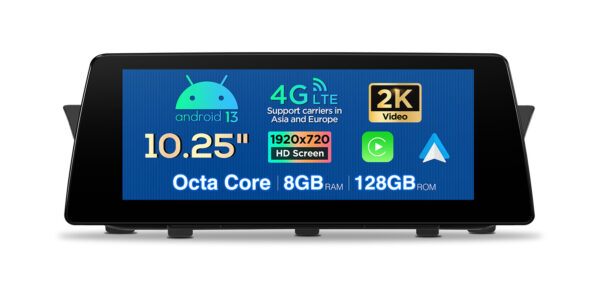10.25″ Fully-laminated 1920×720 HD IPS Screen Android 13 Android Car Stereo with 8GB DDR4 RAM 128GB Solid State ROM Integrated 4G LTE Solution Wireless CarAutoPlay Android Auto Built-in DSP 2K Video Playback USB Tethering for BMW X1 with No Original Display