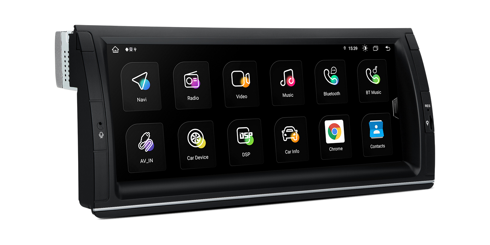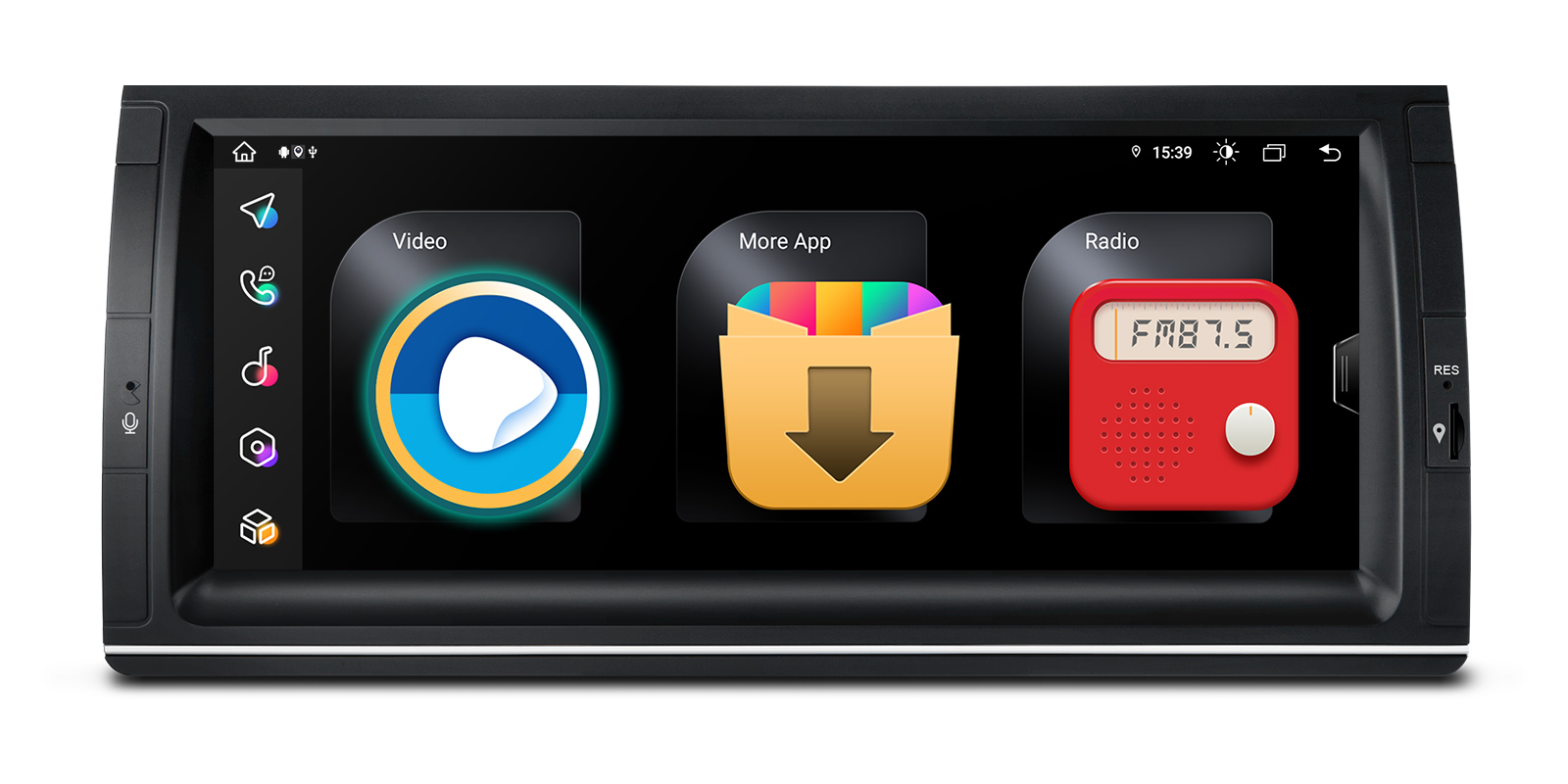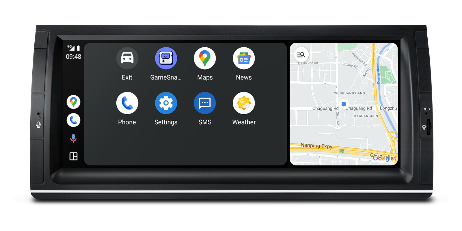 Android Octa Core 2GB DDR4 RAM + 32GB ROM 10.25” 1280×480 HD IPS Screen Car Stereo Multimedia Player GPS Navigation System with Dual UI Automotive-grade Hardware Global 4G LTE Network Screen Mirroring Built-in CarAutoPlay & Android Auto & DSP Radio with RDS Coaxial Audio Output for BMW X5 E53