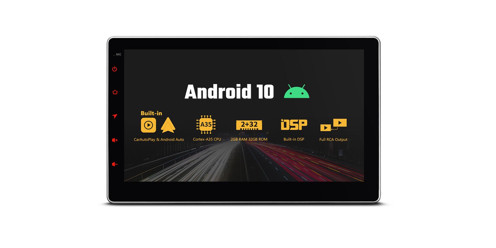 Universal 10.1” Android 10 Quad-core Cortex A35 1.5GHz 32GB ROM Car GPS Multimedia Player with Built-in Carplay & Android Auto Full RCA Output Built-in DSP