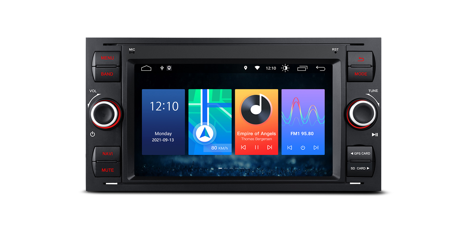 Android 12 Quad Core 2GB RAM + 32GB ROM 7″ Car Stereo Multimedia Player with GPS Navigation Built-in DSP Built-in CarPlay/Android Auto Full RCA Output for FORD