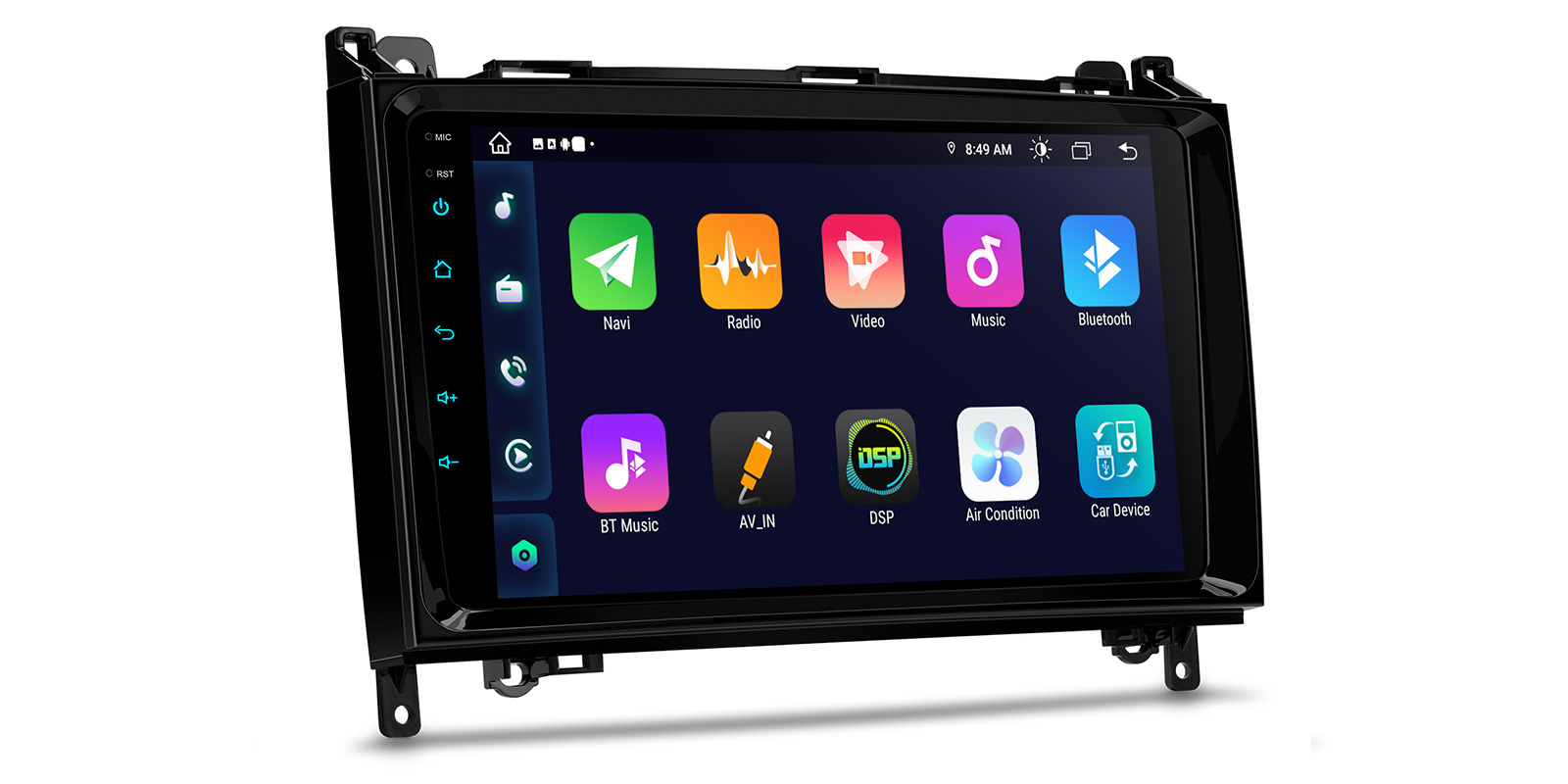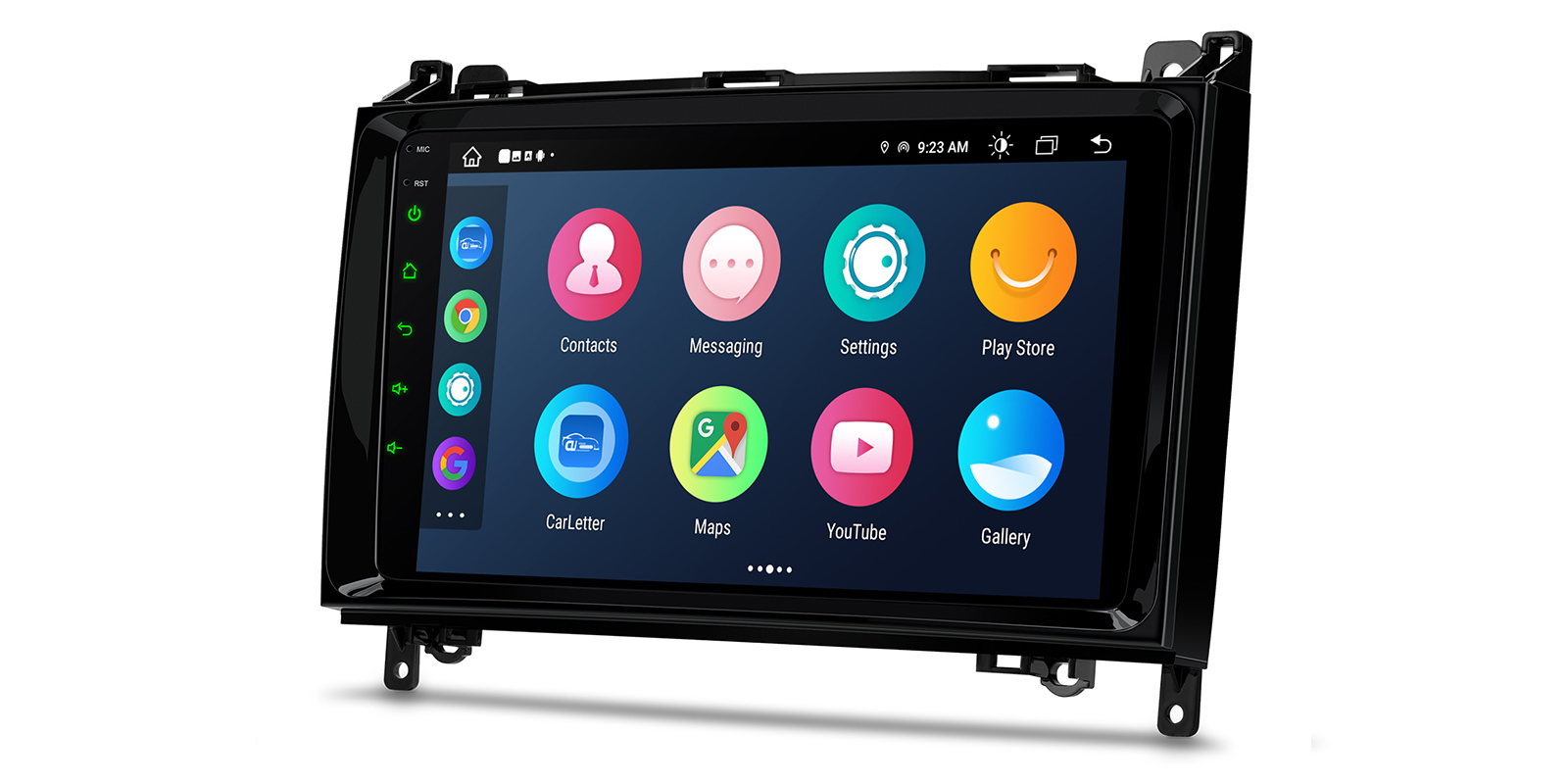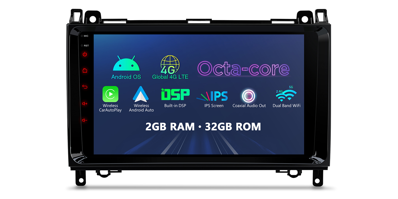 Android Octa Core 2GB DDR4 RAM + 32GB ROM 9” 1280×720 IPS Screen Car Stereo Multimedia Player GPS Navigation System with Dual UI Automotive-grade Hardware Global 4G LTE Network Screen Mirroring Built-in CarAutoPlay & Android Auto & DSP Radio with RDS Coaxial Audio Output Custom Fit for Merdedes-Benz A-Class/B-Class/Sprinter/Viano Vito