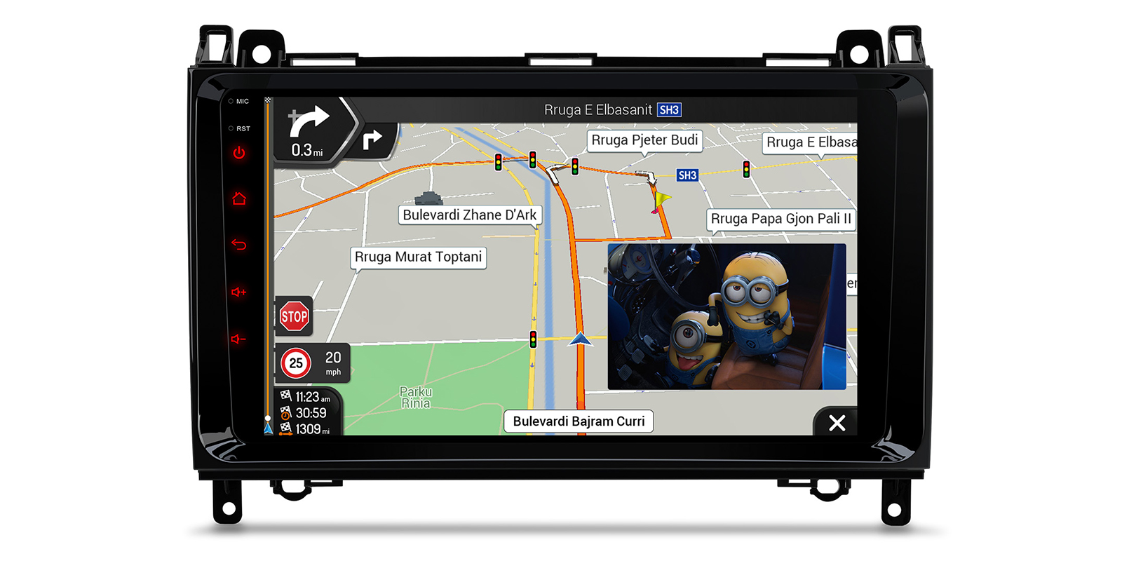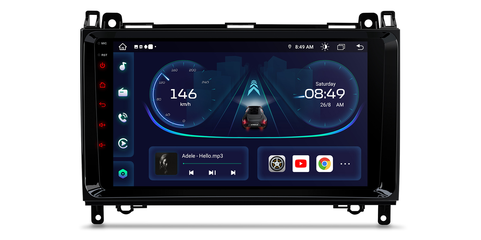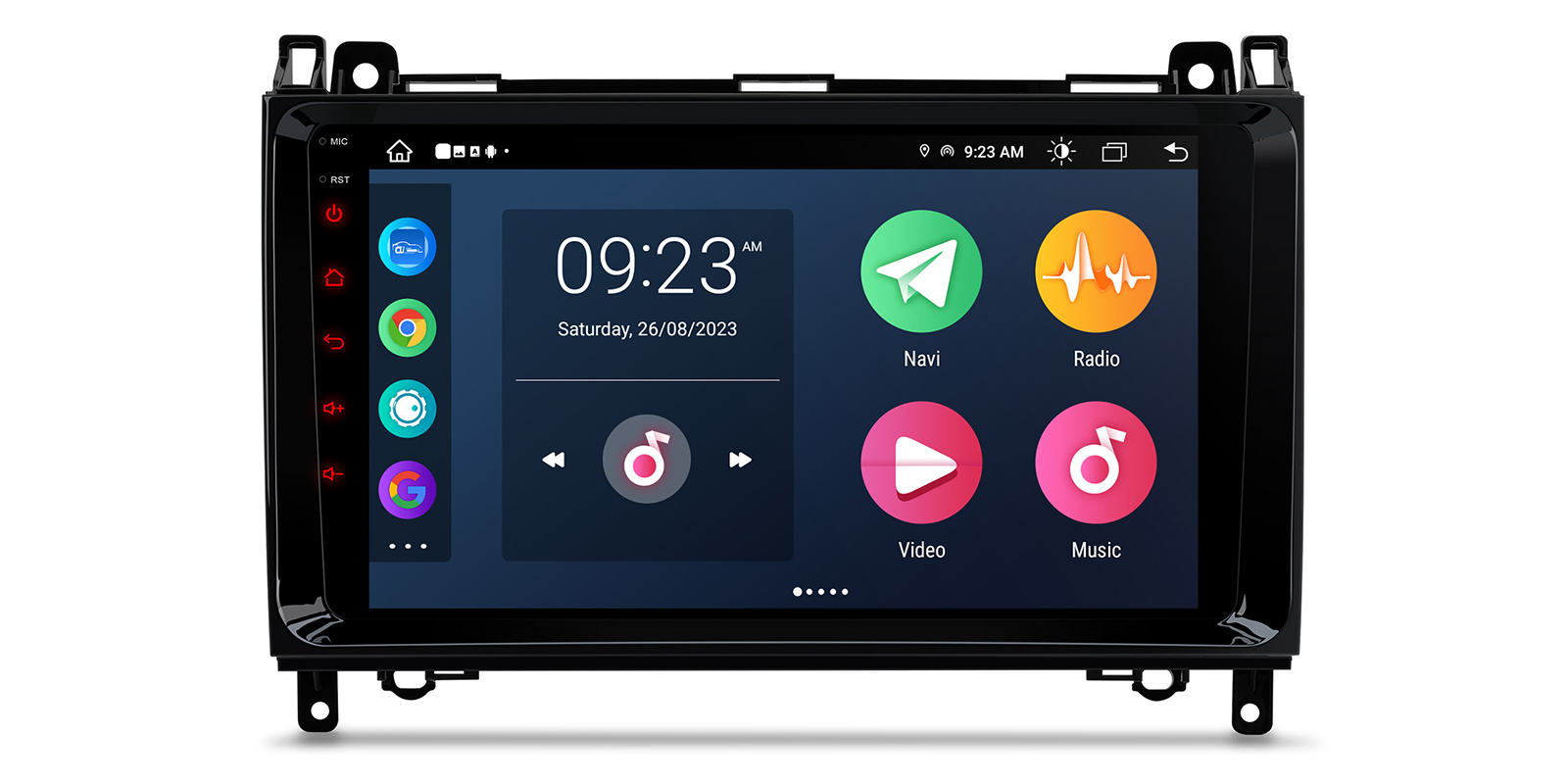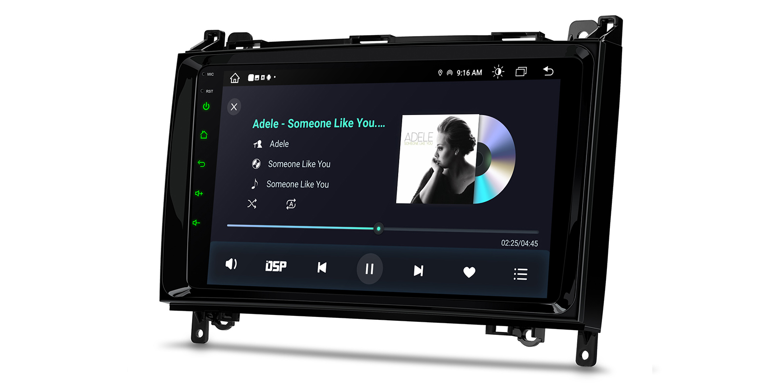 Android Octa Core 2GB DDR4 RAM + 32GB ROM 9” 1280×720 IPS Screen Car Stereo Multimedia Player GPS Navigation System with Dual UI Automotive-grade Hardware Global 4G LTE Network Screen Mirroring Built-in CarAutoPlay & Android Auto & DSP Radio with RDS Coaxial Audio Output Custom Fit for Merdedes-Benz A-Class/B-Class/Sprinter/Viano Vito