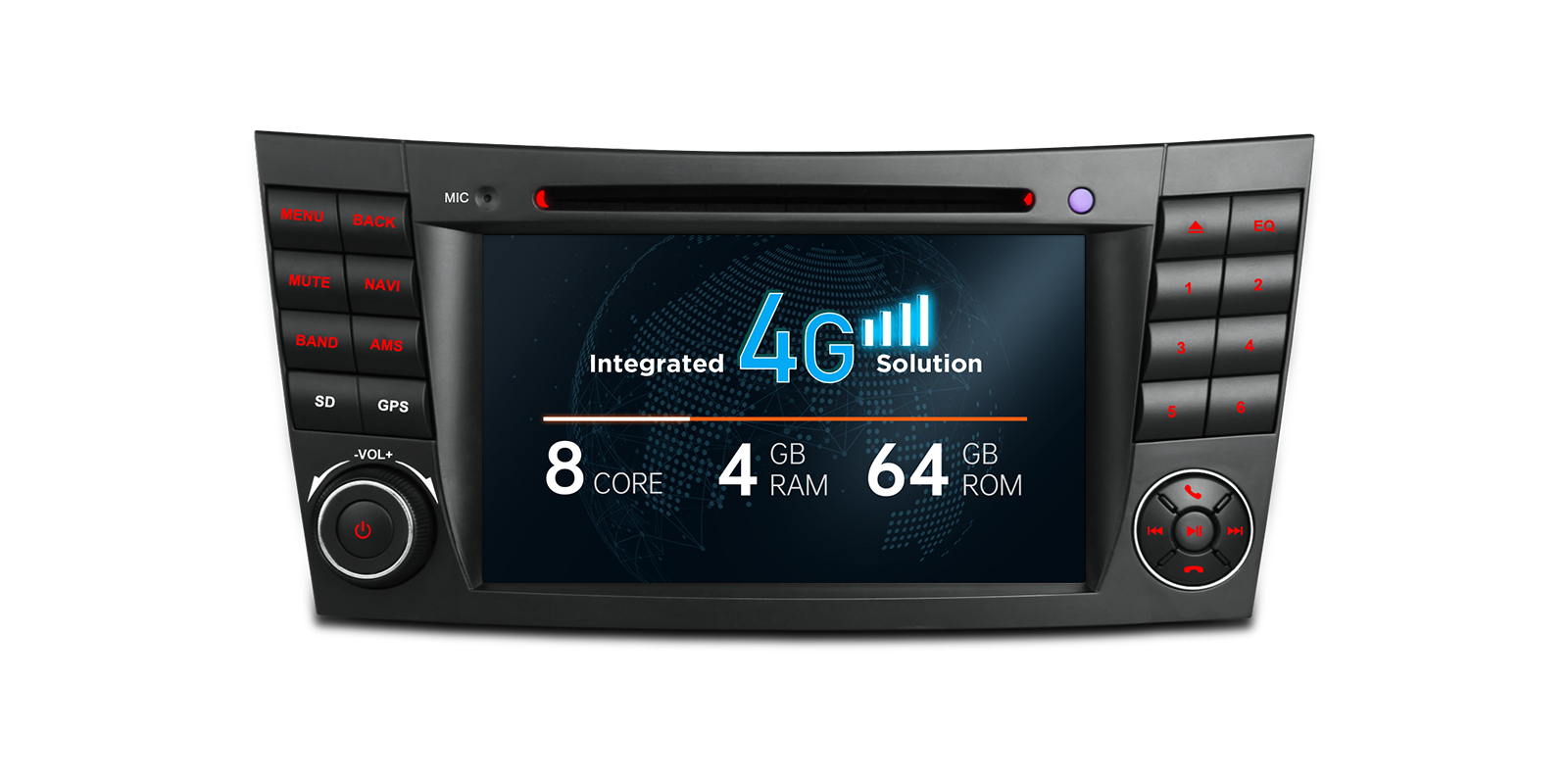 Android 11 Octa Core 4GB RAM + 64GB ROM 7” Car DVD Multimedia Player GPS System with Integrated 4G Solution Built-in CarAutoPlay & Android Auto & DSP Custom Fit for Mercedes-Benz E-Class/CLS Class