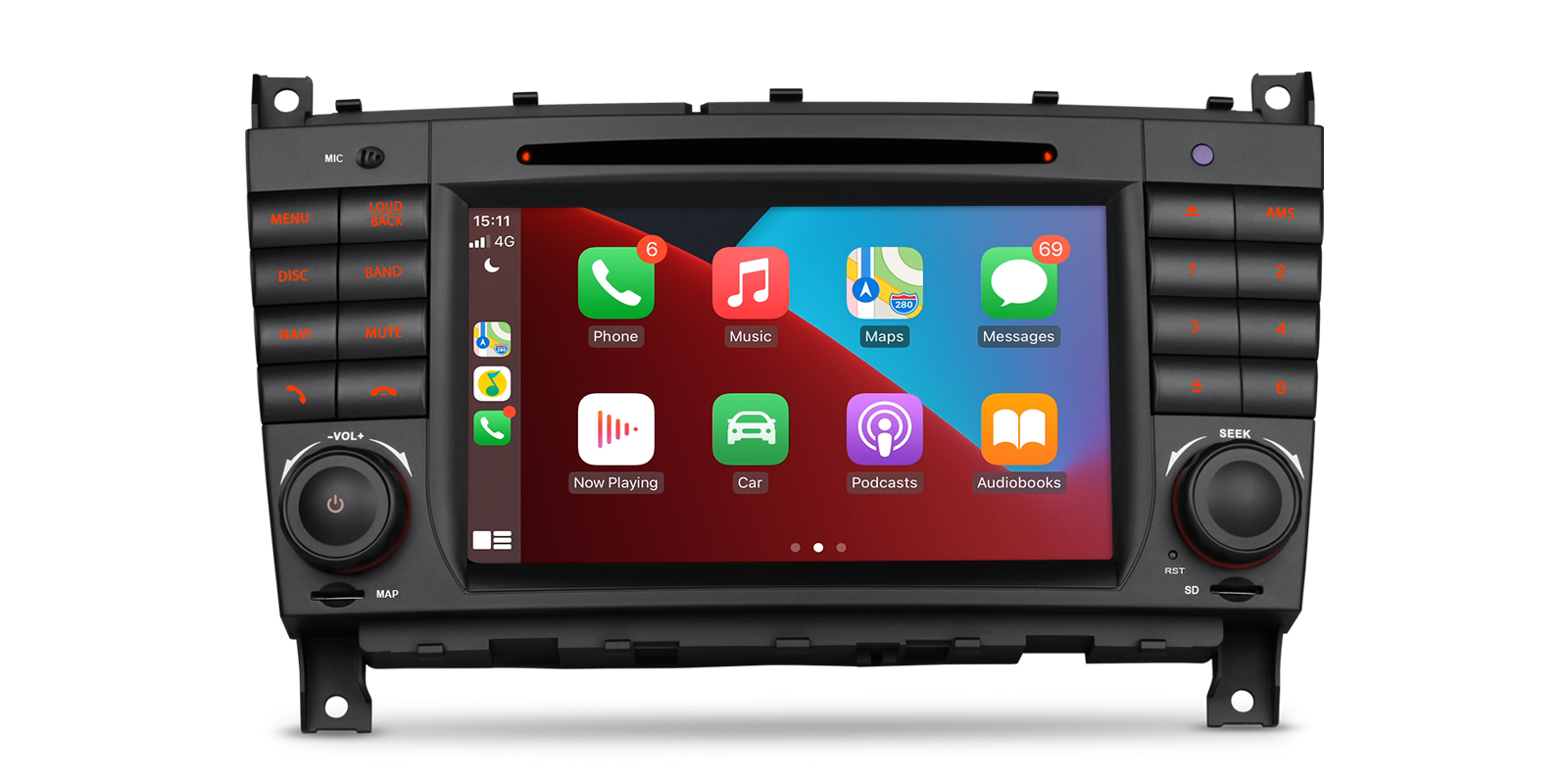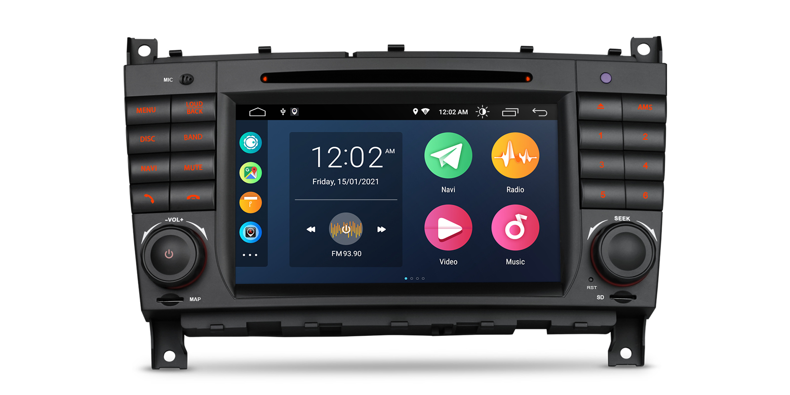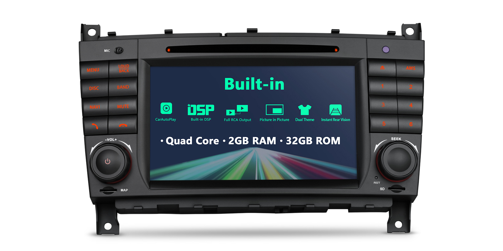 Android 10 Quad Core 2GB RAM + 32GB ROM Multimedia Car DVD with 7″ Display Built-in CarPlay Built-in DSP Custom Fit for Mercedes-Benz CLK-Class/C-Class/G-Class