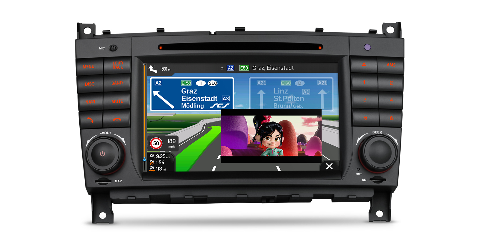 With the all-function output you can share all features simultaneously with your friends in the back seat. Thanks to the dual zone function, videos (and other files) on USB could be transmitted to the back seat monitors for your kids to watch, while the head unit is navigating. No more distractions.