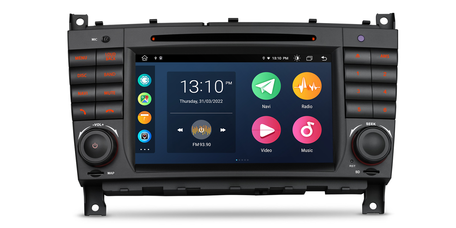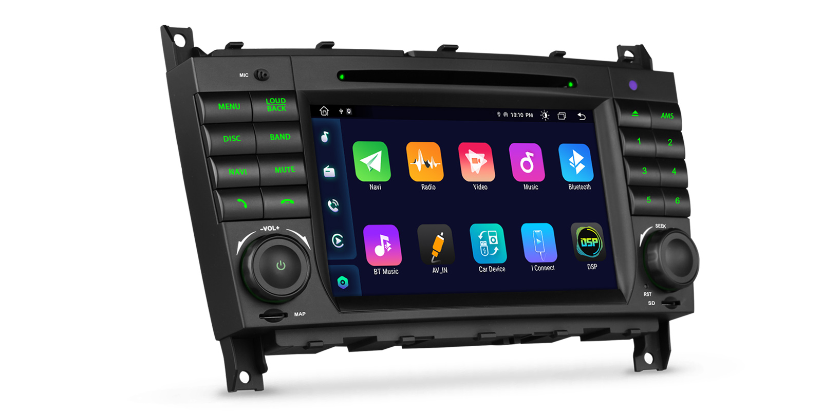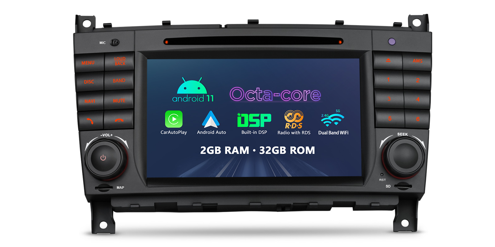 Android 12 Octa Core 2GB DDR4 RAM + 32GB ROM 7” Car DVD Multimedia Player GPS Navigation System with Dual UI Automotive-grade Hardware Built-in CarAutoPlay & Android Auto & DSP Radio with RDS Coaxial Audio Output Custom Fit for Mercedes-Benz C-Class, CLK Class, G-Class