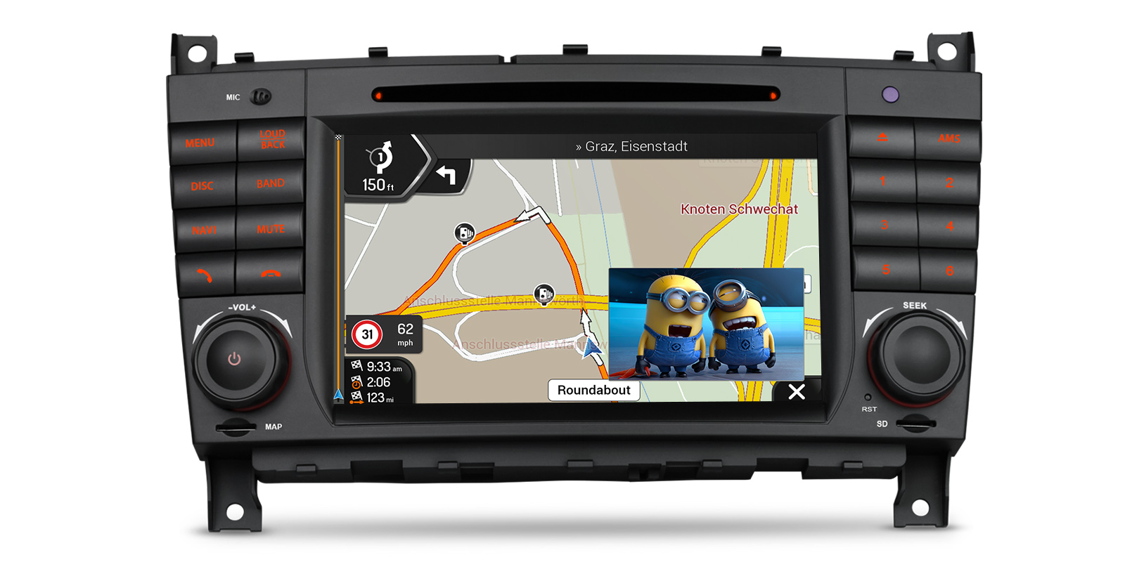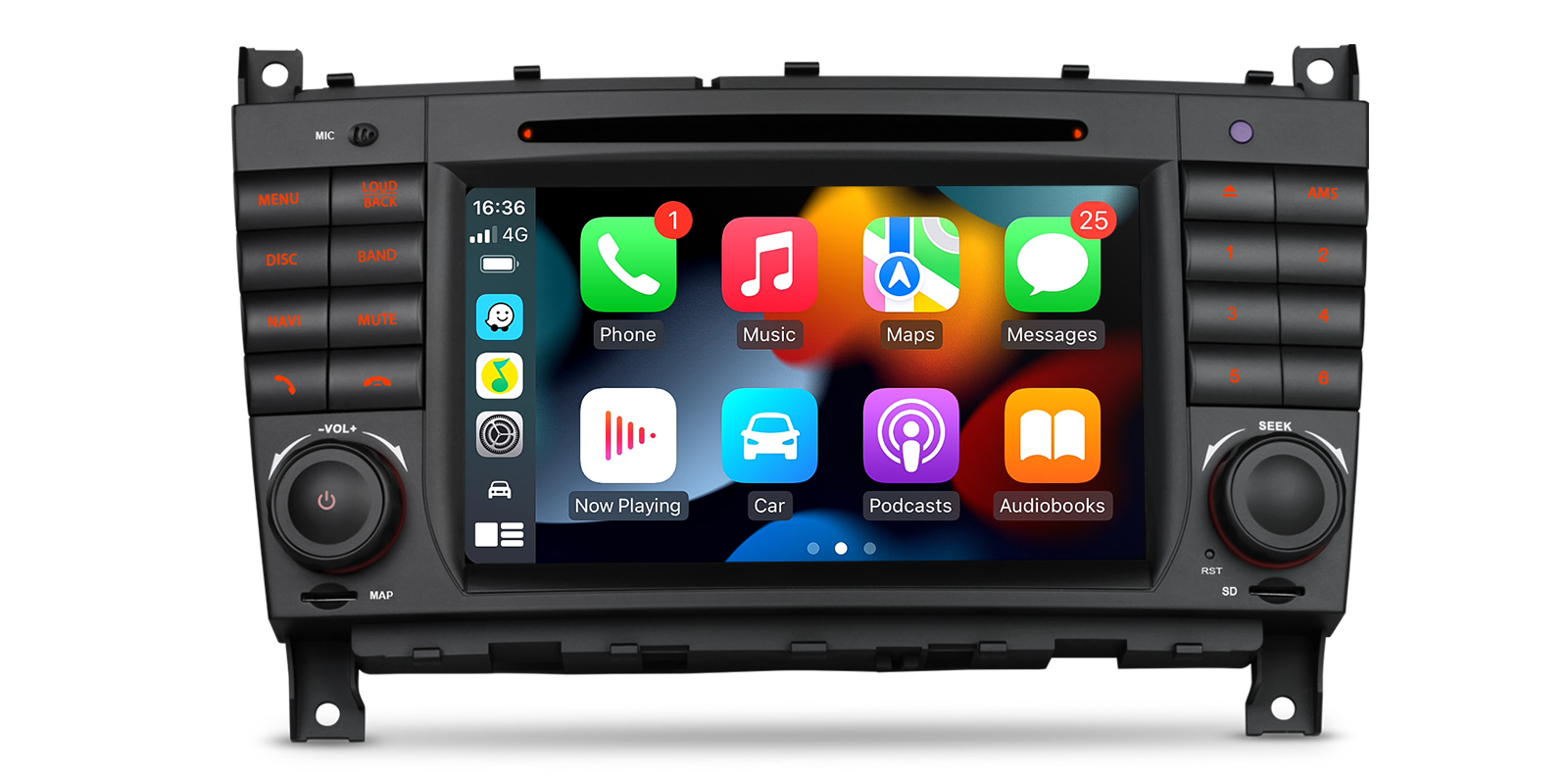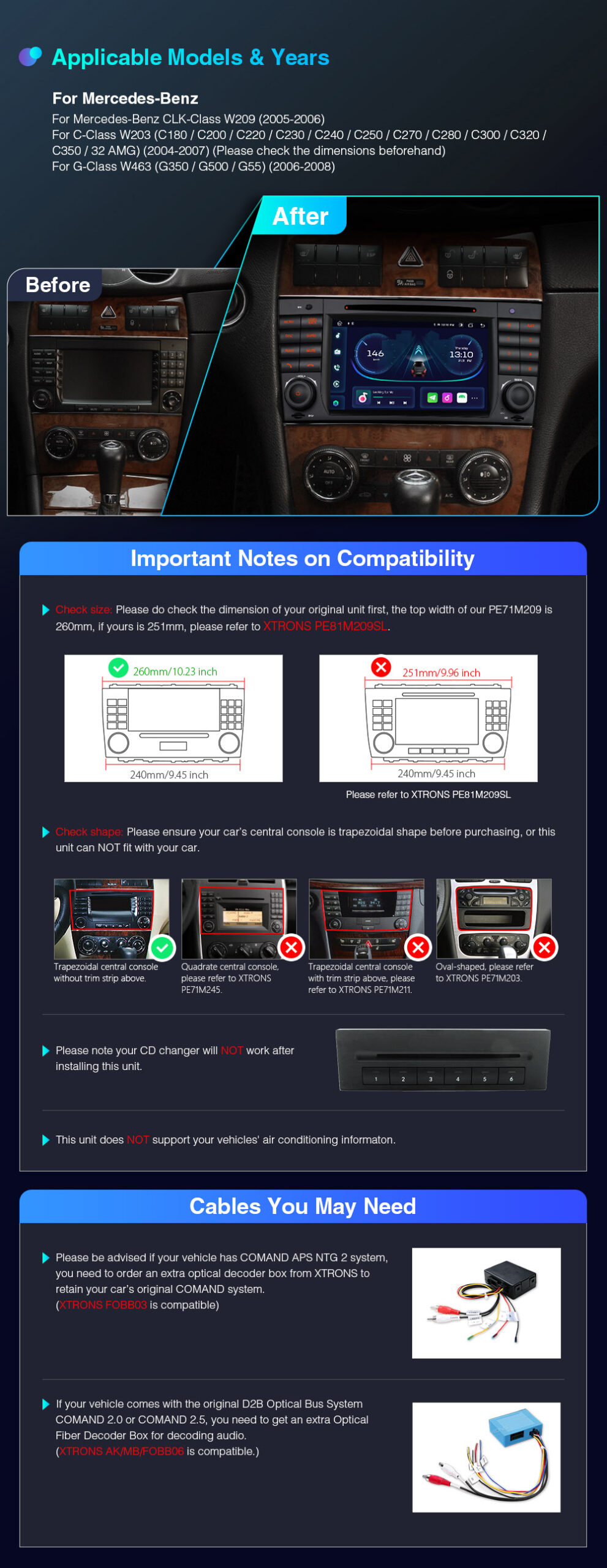 Android 12 Octa Core 2GB DDR4 RAM + 32GB ROM 7” Car DVD Multimedia Player GPS Navigation System with Dual UI Automotive-grade Hardware Built-in CarAutoPlay & Android Auto & DSP Radio with RDS Coaxial Audio Output Custom Fit for Mercedes-Benz C-Class, CLK Class, G-Class