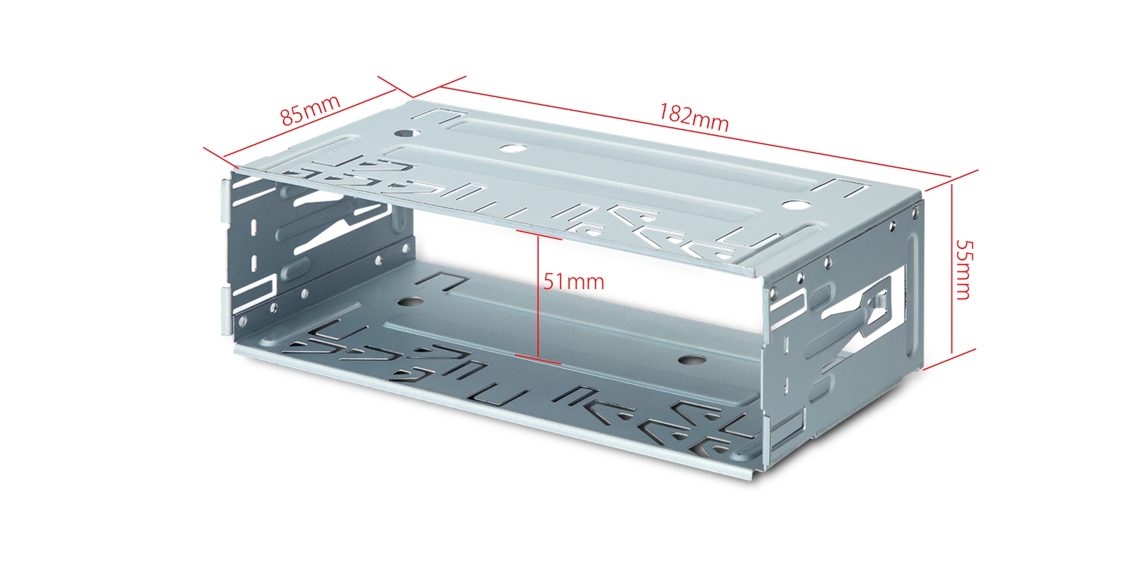 This fitting cage fits most single DIN aftermarket headunits. It is designed to securely hold the stereo in the slot.