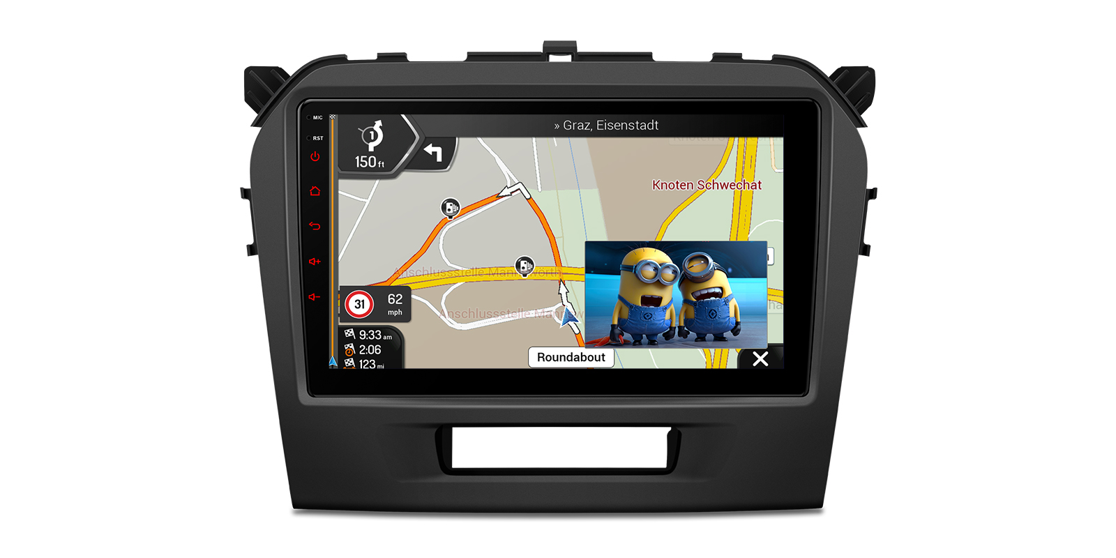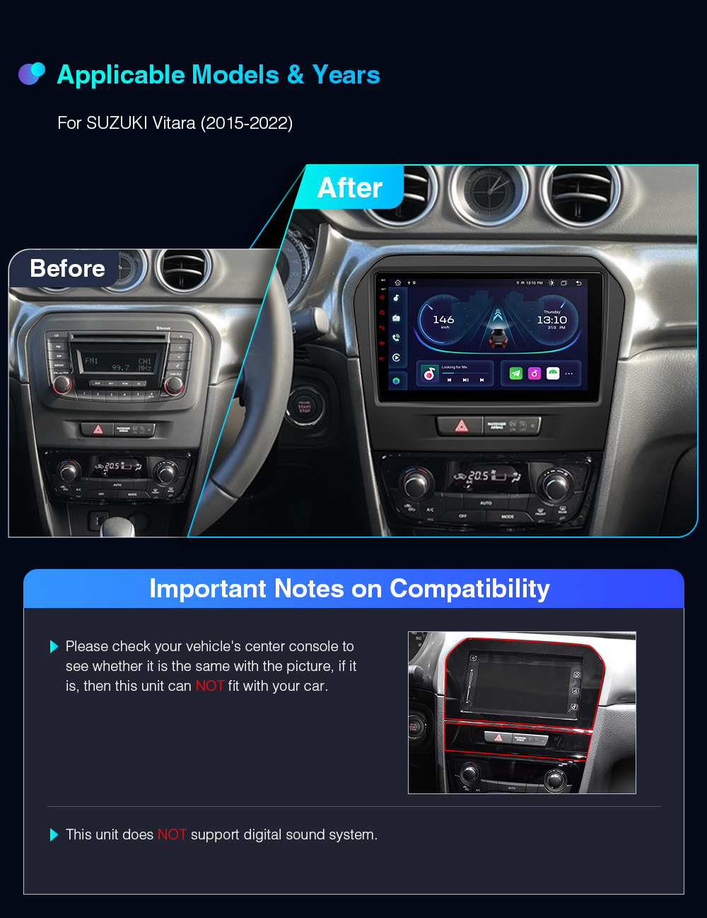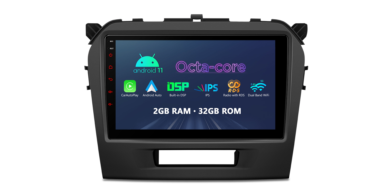 Android 12 Octa Core 2GB DDR4 RAM + 32GB ROM 9” 1280×720 IPS Screen Car Stereo Multimedia Player GPS Navigation System with Dual UI Automotive-grade Hardware Built-in CarAutoPlay & Android Auto & DSP Radio with RDS Coaxial Audio Output Custom Fit for Suzuki Vitara 2015-2022