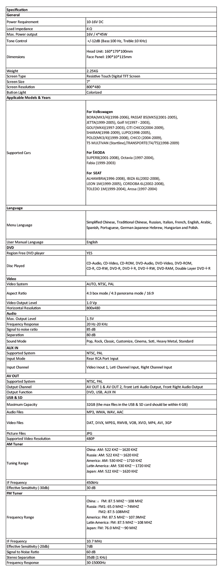 The dual CANbus is designed to fit perfectly for Volkswagen / SKODA / SEAT, it builds a close relationship between this unit and your car.